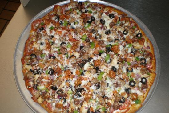 This pizza is designed to be an extreme pizza with an abundance of toppings. Super Combo contains Hurricane Sauce(red+white mixed), Salami, Ham, Pepperoni, Mushrooms, Green Peppers, Onions, Olives, Tomatoes, Lemon Pepper, Chicken, Bacon Bits, Sausage, Linguisa, Beef, and Light Extra Cheese.